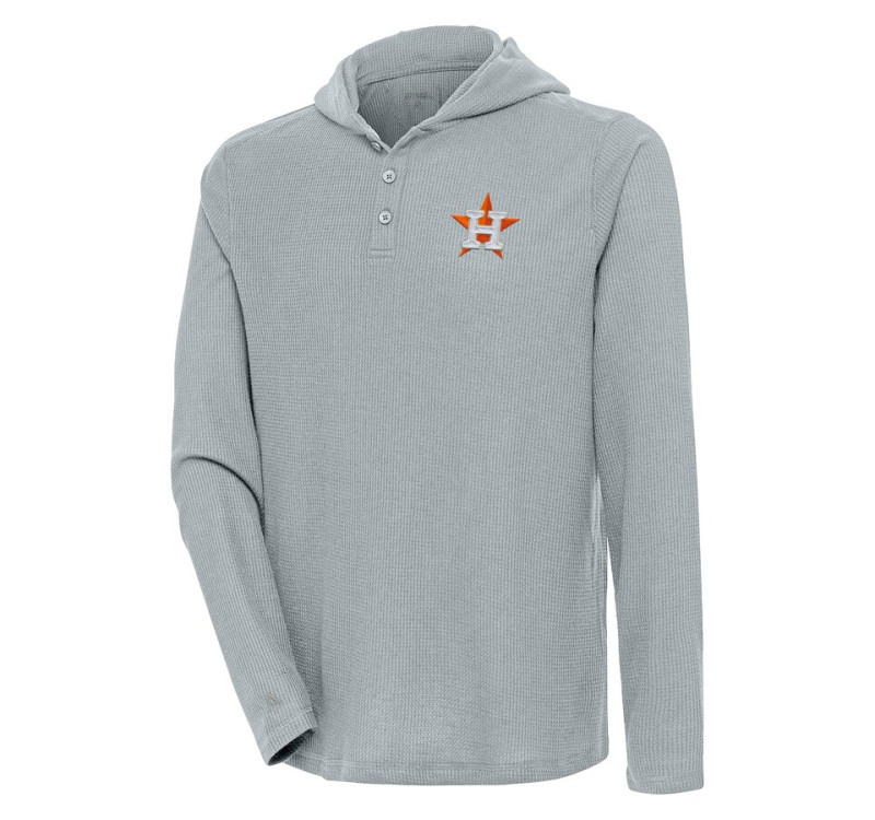- Adult Men's Astros Antigua Strong Hold Long Sleeve Henley baseball Hoodie baseball T-shirt - Gray