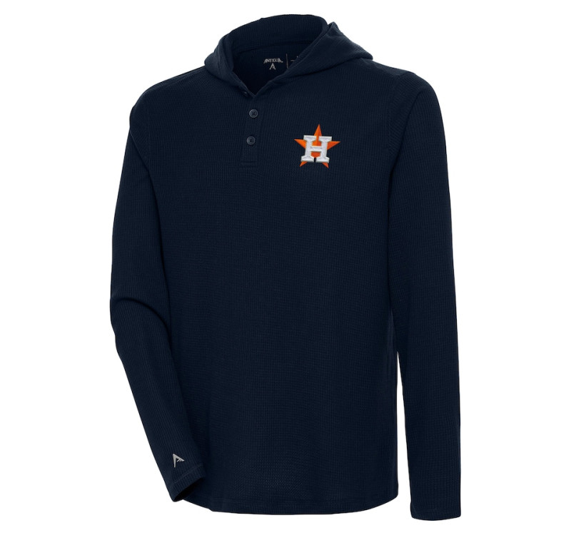 - Adult Men's Astros Antigua Strong Hold Long Sleeve Henley baseball Hoodie baseball T-shirt - Navy