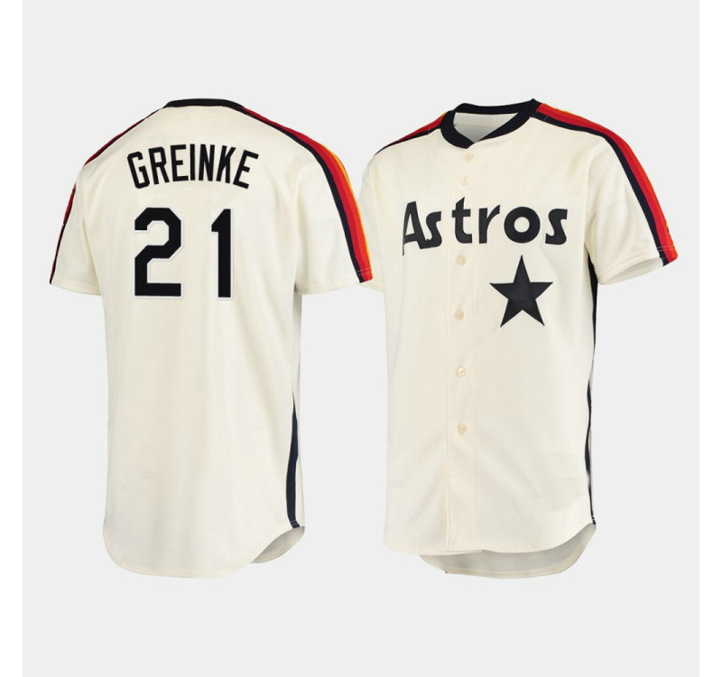 - Astros #21 Zack Greinke Oilers vs. Astros Cooperstown Collection Cream Jersey Men's