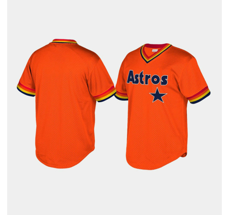 - Astros Cooperstown Collection Mesh Wordmark V-Neck Orange Mitchell & Ness Jersey Men's