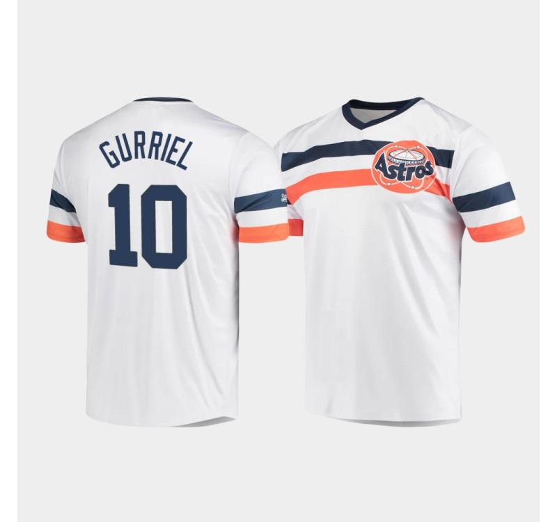 - Men's Astros Yuli Gurriel #10 White Cooperstown Collection V-Neck Jersey
