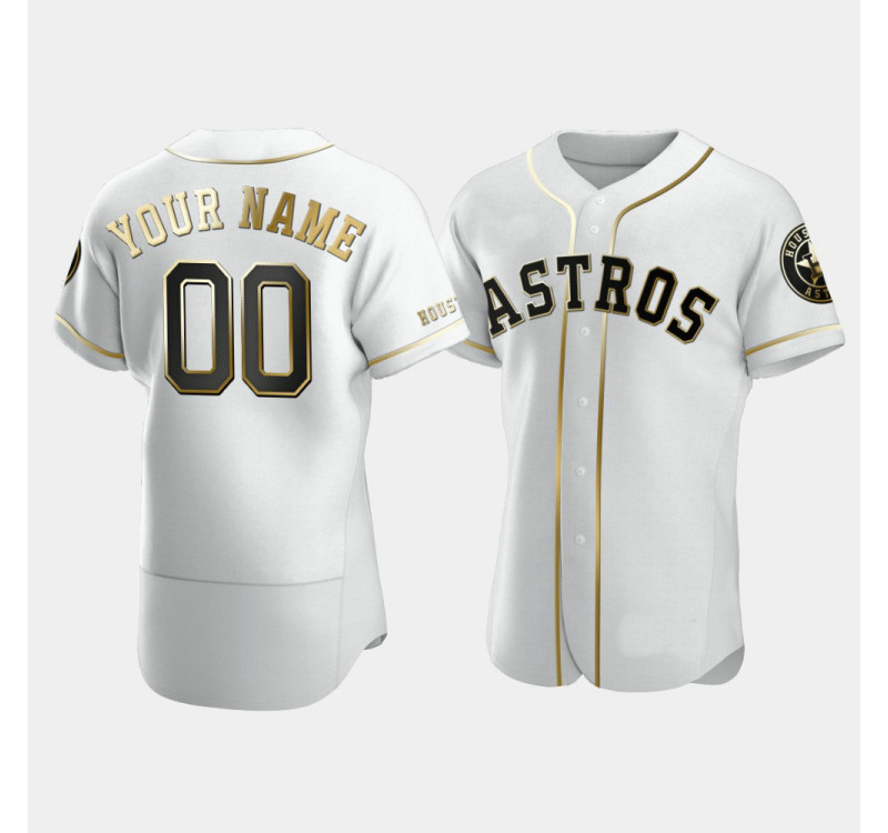 Men's Houston Astros #00 Custom White Golden Edition Authentic Jersey