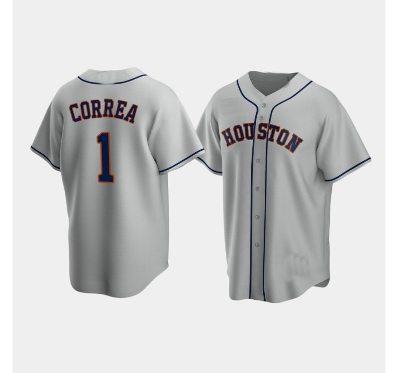 - Men's Astros #1 Carlos Correa Gray Replica Road Jersey