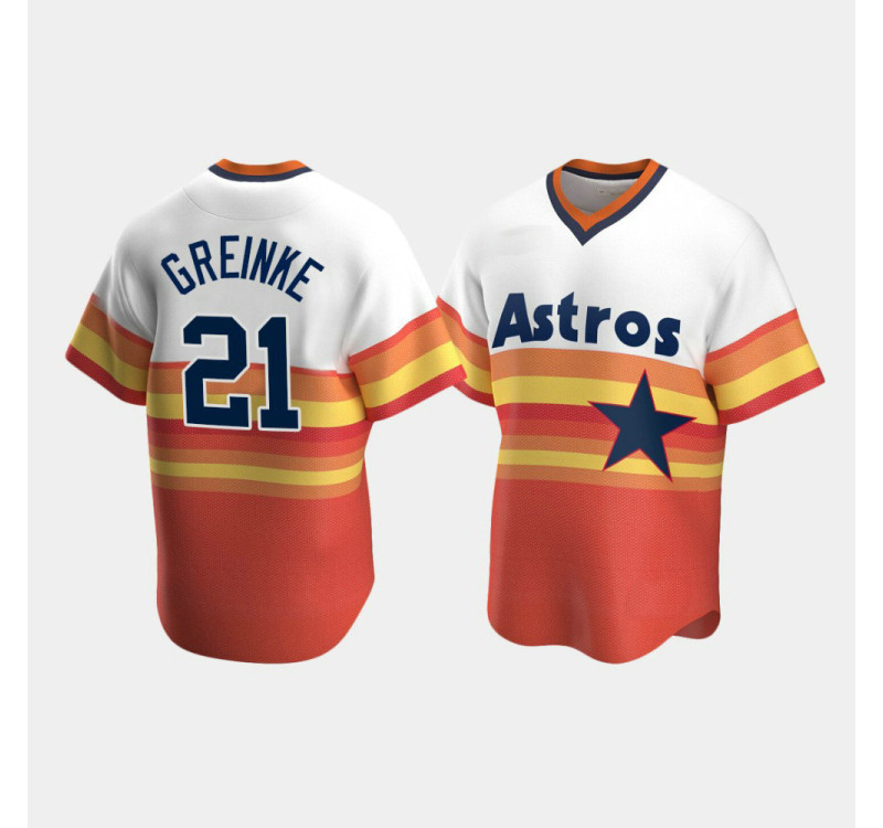 - Men's Astros #21 Zack Greinke Cooperstown Collection Home White Orange Jersey