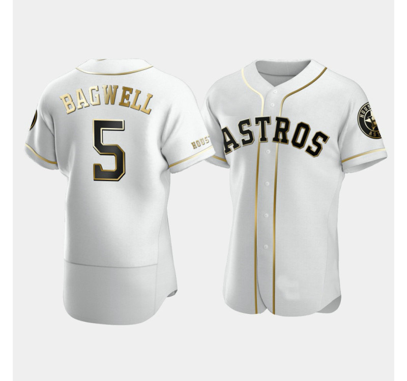 - Men's Astros #5 Jeff Bagwell White Golden Edition Authentic Jersey