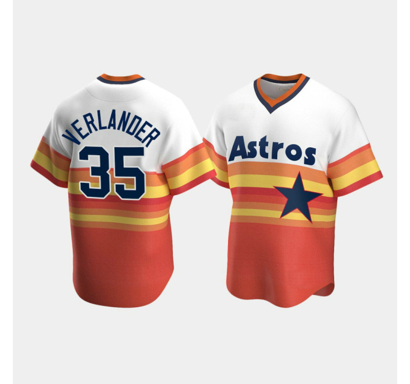 - Men's Astros #35 Justin Verlander Cooperstown Collection Home White Orange Jersey