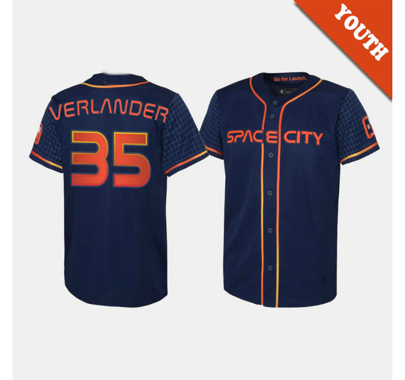 - Kid's Astros #35 Justin Verlander Navy 2022 City Connect Replica Jersey