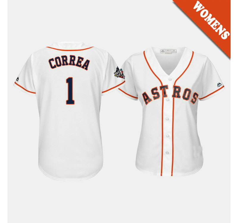 - Women's Astros #1 Carlos Correa 2019 World Series Bound Cool Base White Jersey