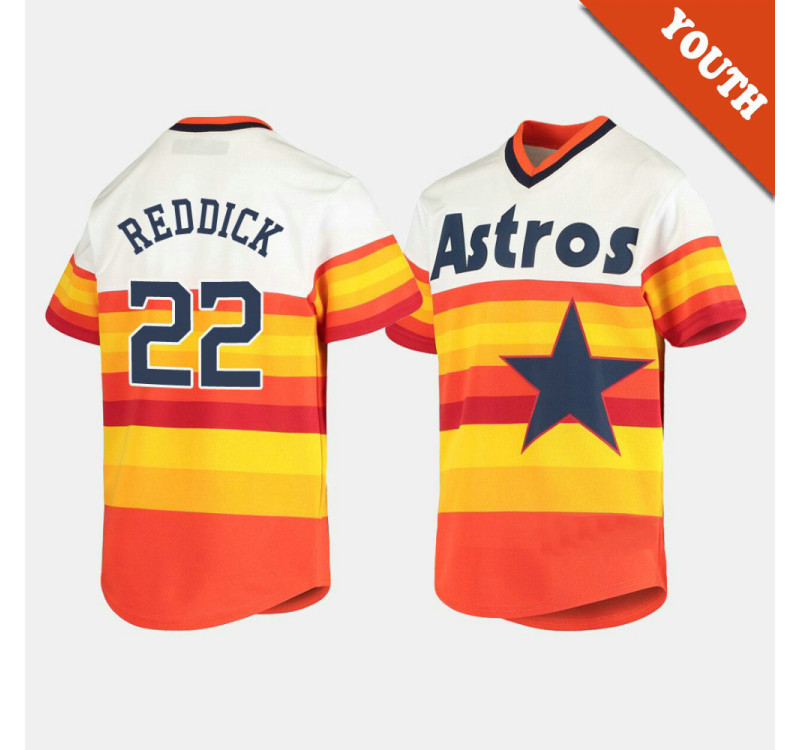 - Kid's Astros #22 Josh Reddick Cooperstown Collection Home White Orange Jersey