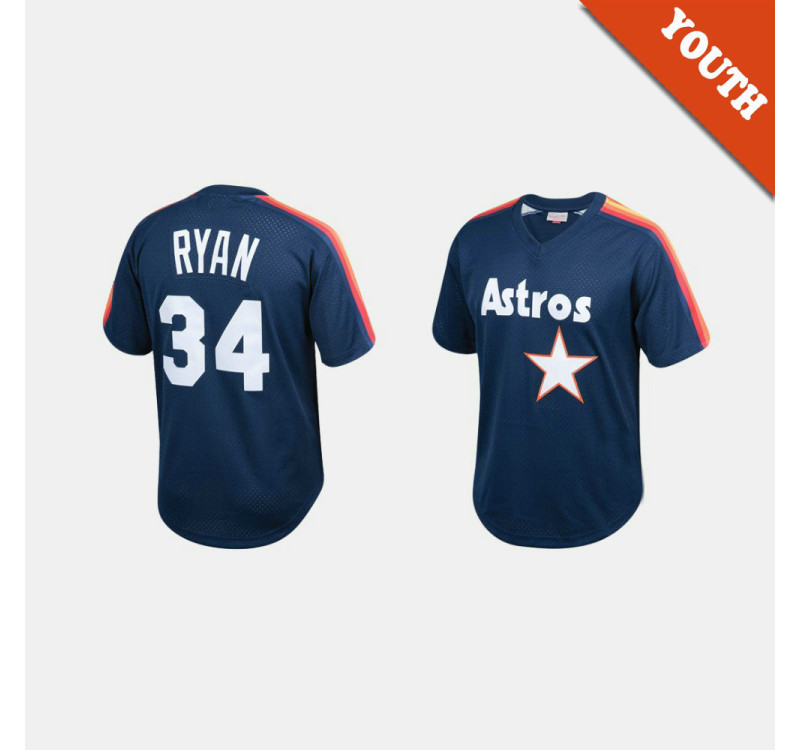 - Kid's Astros #34 Nolan Ryan Cooperstown Collection Mesh Batting Practice Navy Mitchell & Ness Jersey