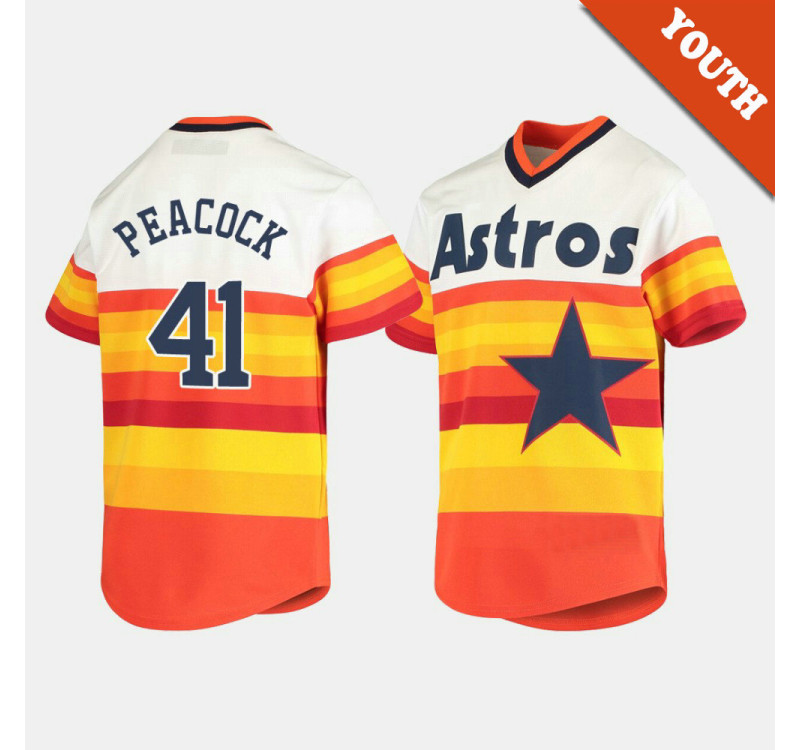 - Kid's Astros #41 Brad Peacock Cooperstown Collection Home White Orange Jersey