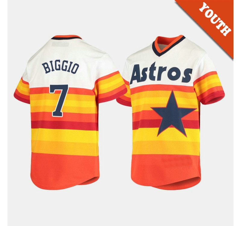 - Kid's Astros #7 Craig Biggio Cooperstown Collection Home White Orange Jersey
