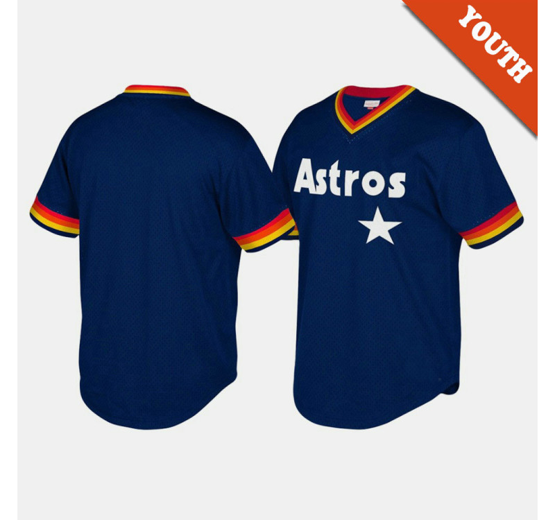 - Kid's Astros Cooperstown Collection Mesh Wordmark V-Neck Navy Mitchell & Ness Jersey